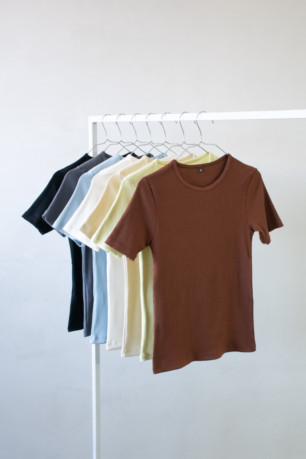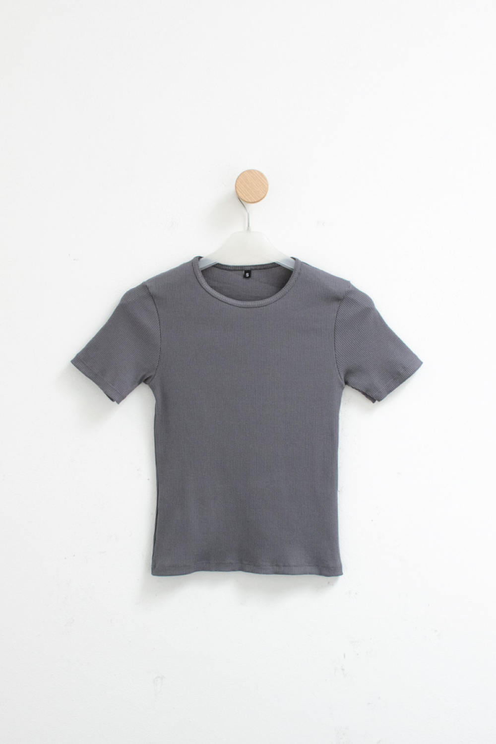 Remera basica de morley algodón con spandex. Modelo con cuello redondo terminado con collareta fina.
