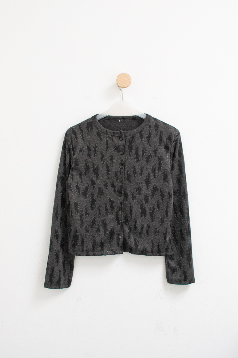 Cardigan de lanilla jacquard con diseño animal print. Modelo con cuello redondo y cierre de prenda con botones. Combinable con la musculosa YANI.
