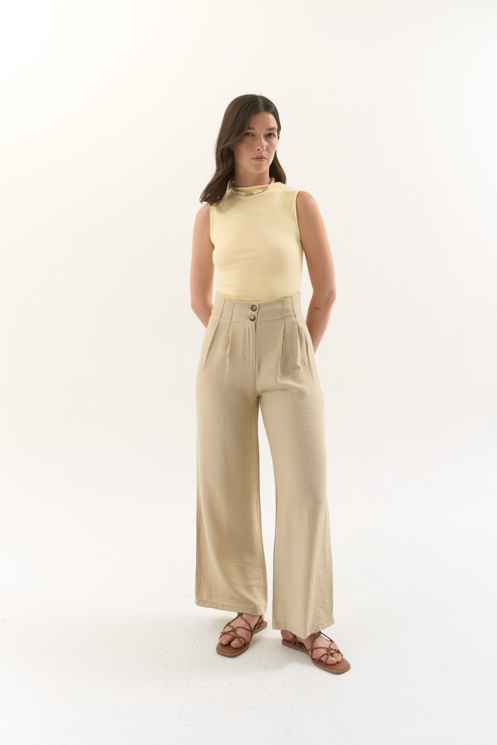 Top sin mangas con cuello redondo y vista interna. Modelo confeccionado en ribb de algodón con lycra.