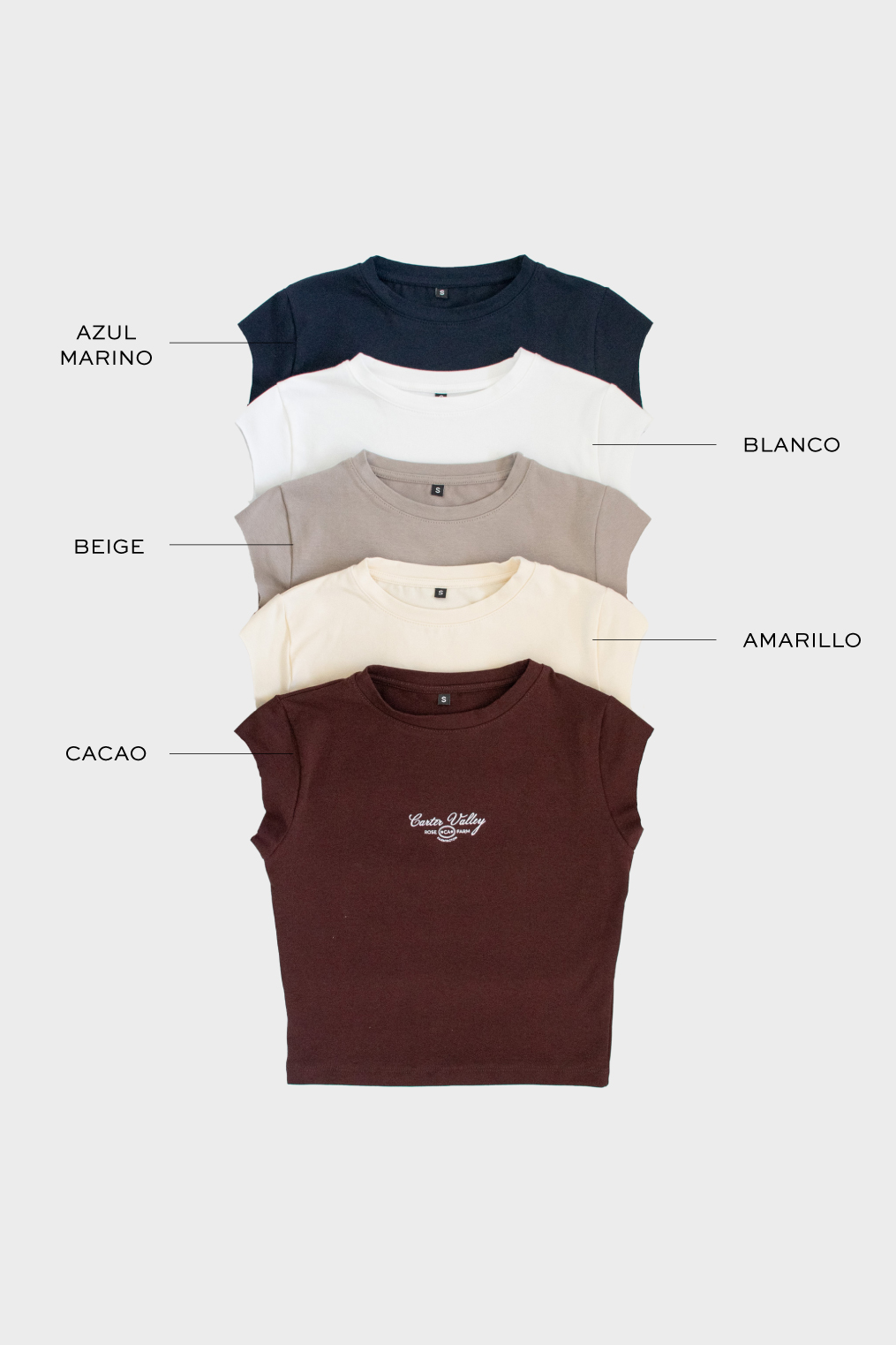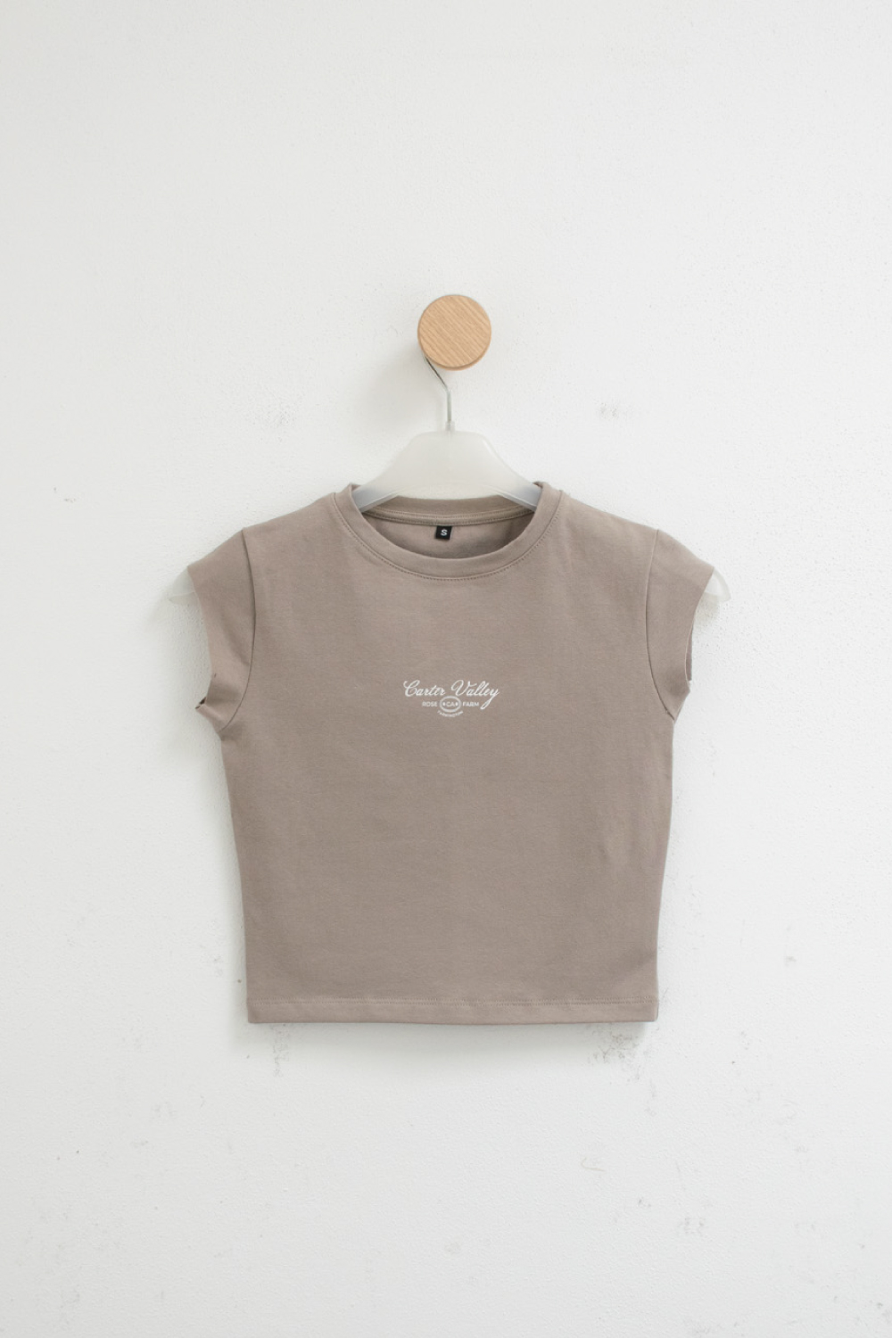 Remera de algodón con lycra estampada. Modelo con cuello redondo y manga japonesa al corte.