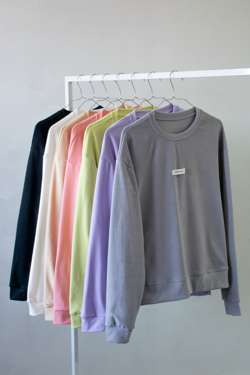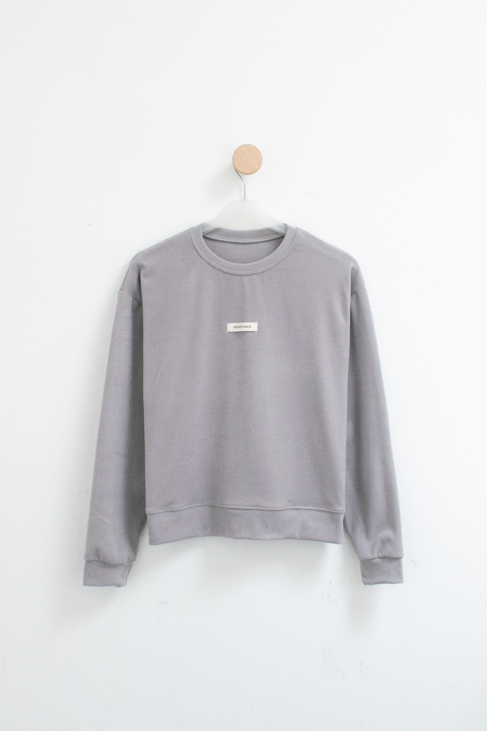 Buzo de darlon liso con cuello redondo y detalle de etiqueta de algodón en el delantero. Ideal para media estación.
