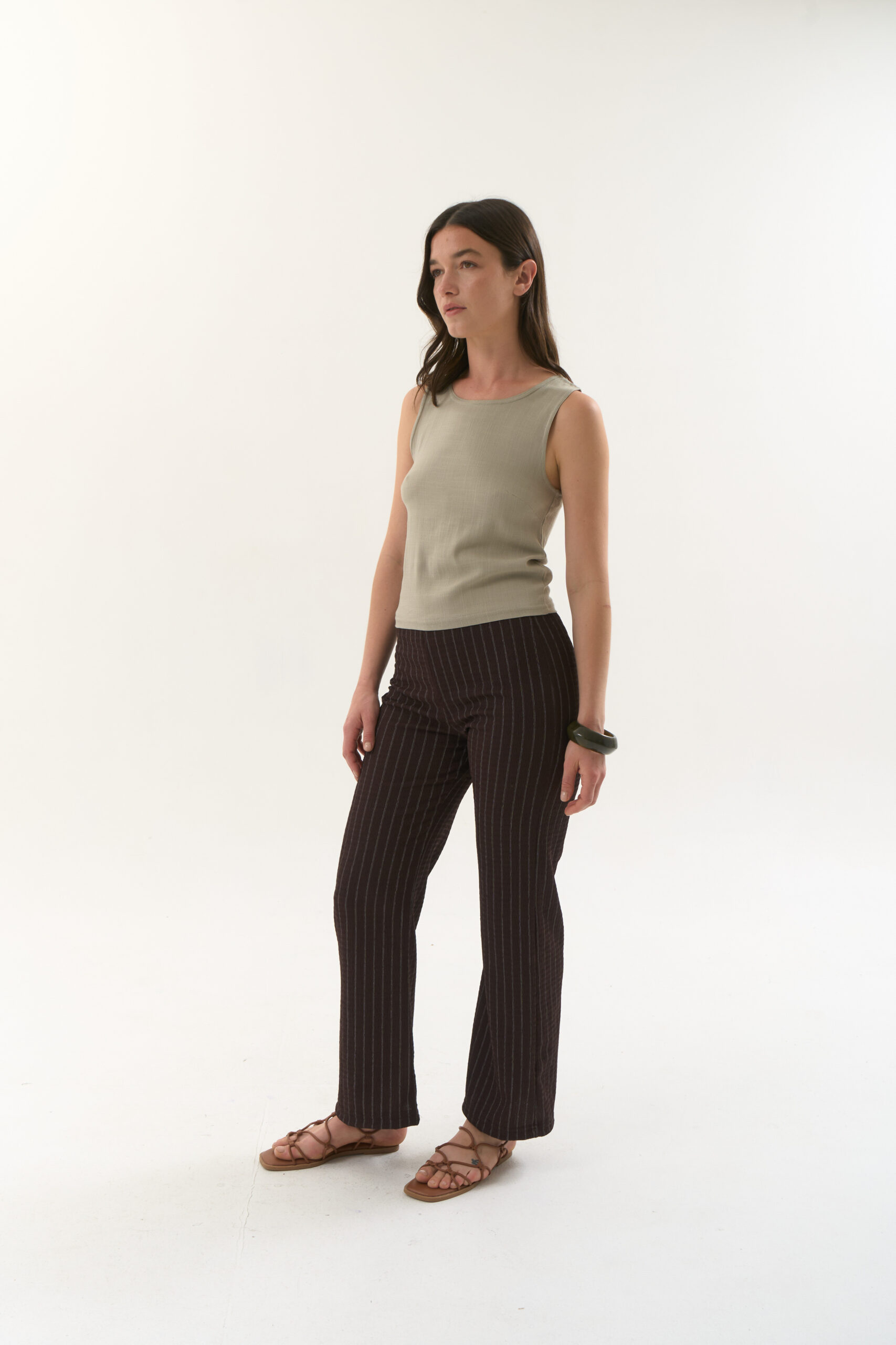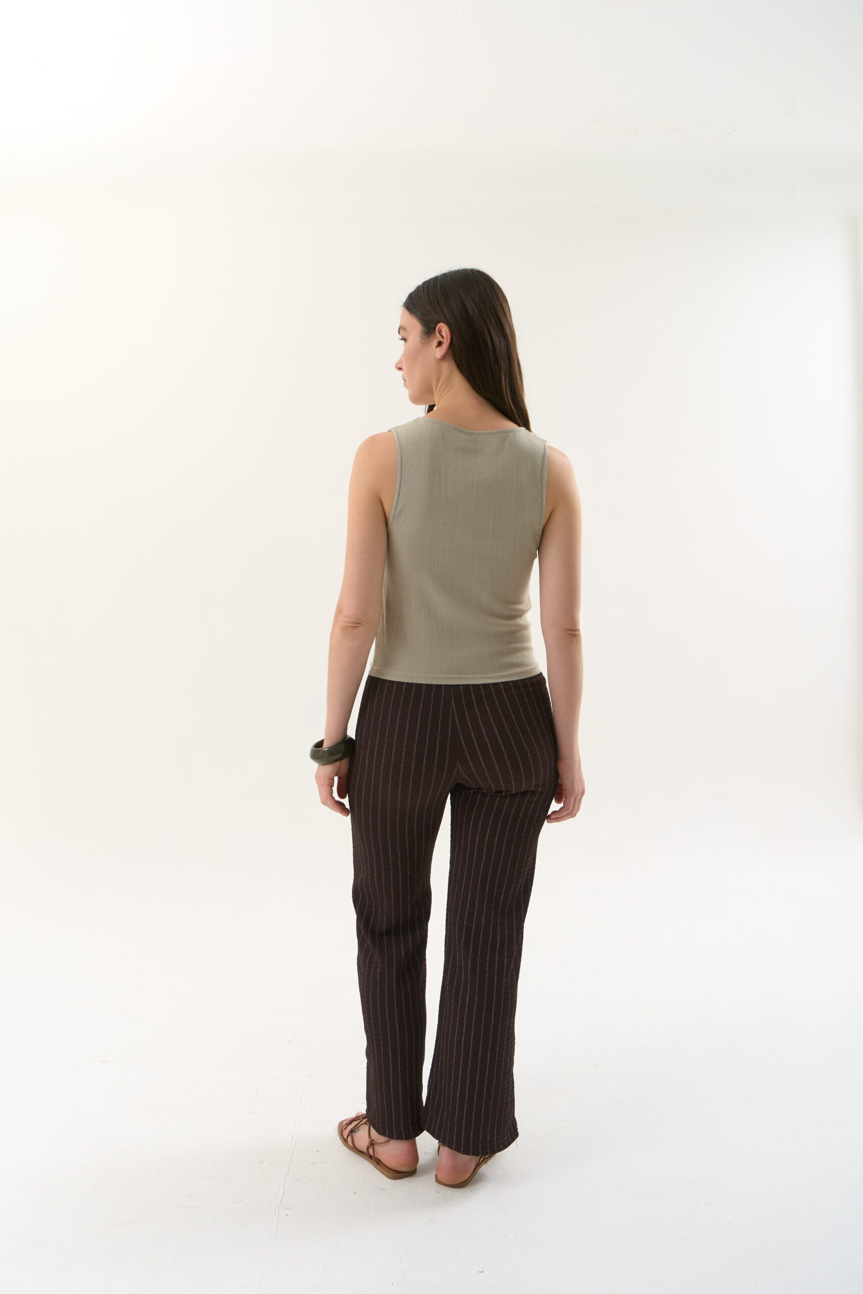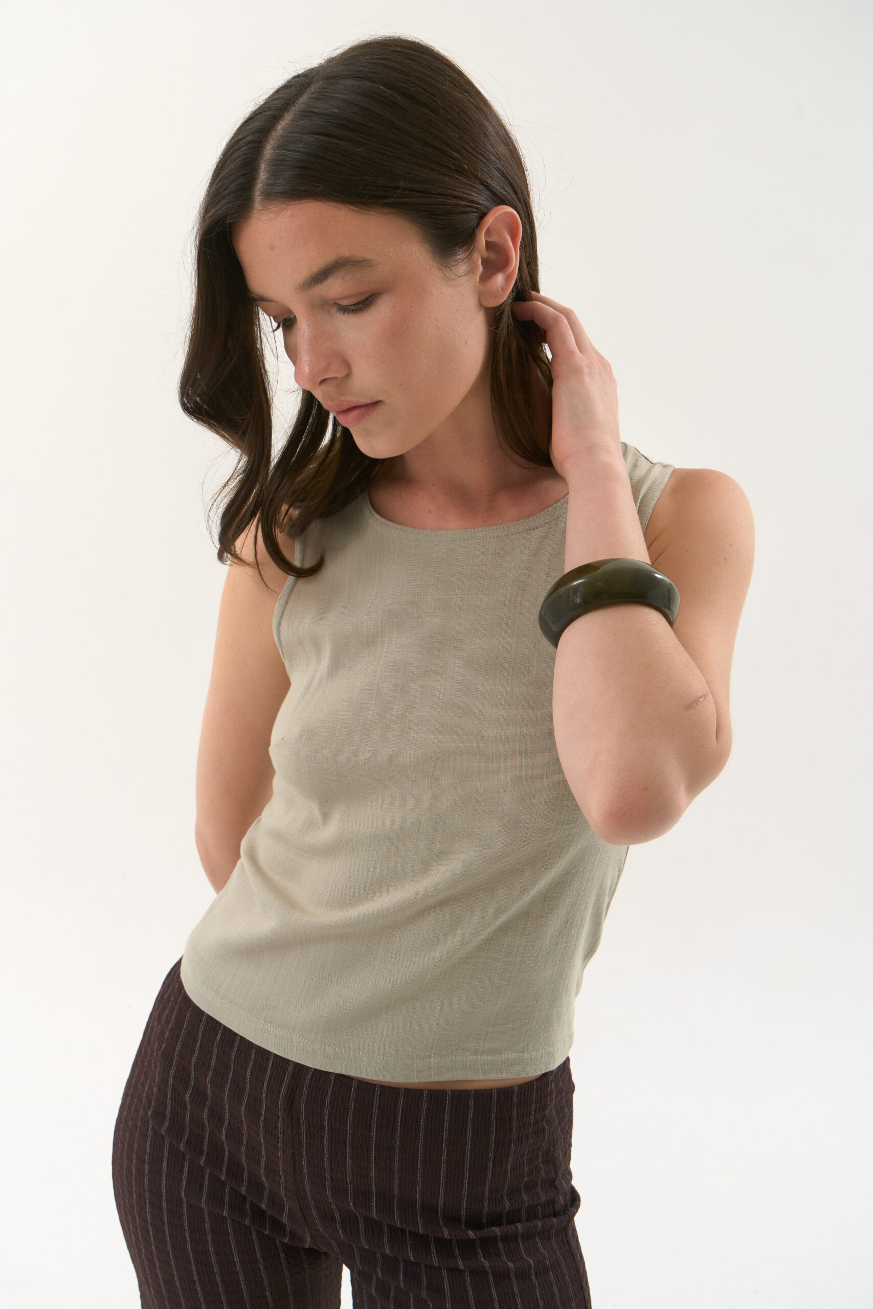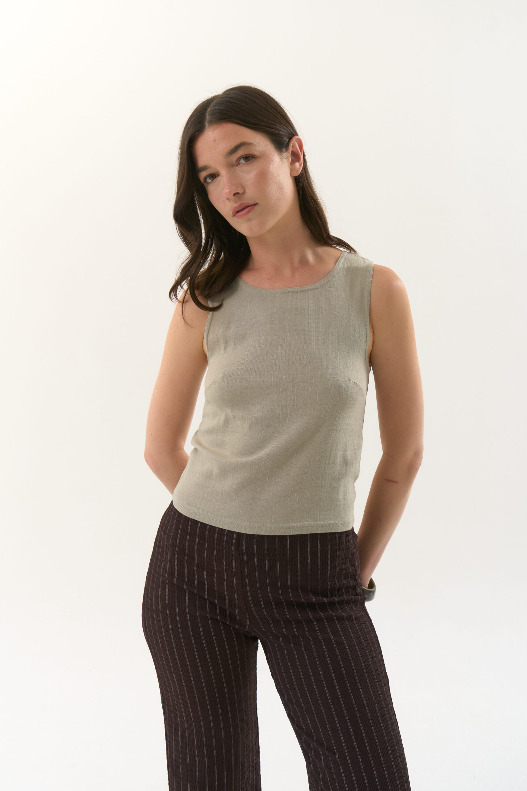 Musculosa basica en rayon slub con cuello redondo y pinzas en busto.