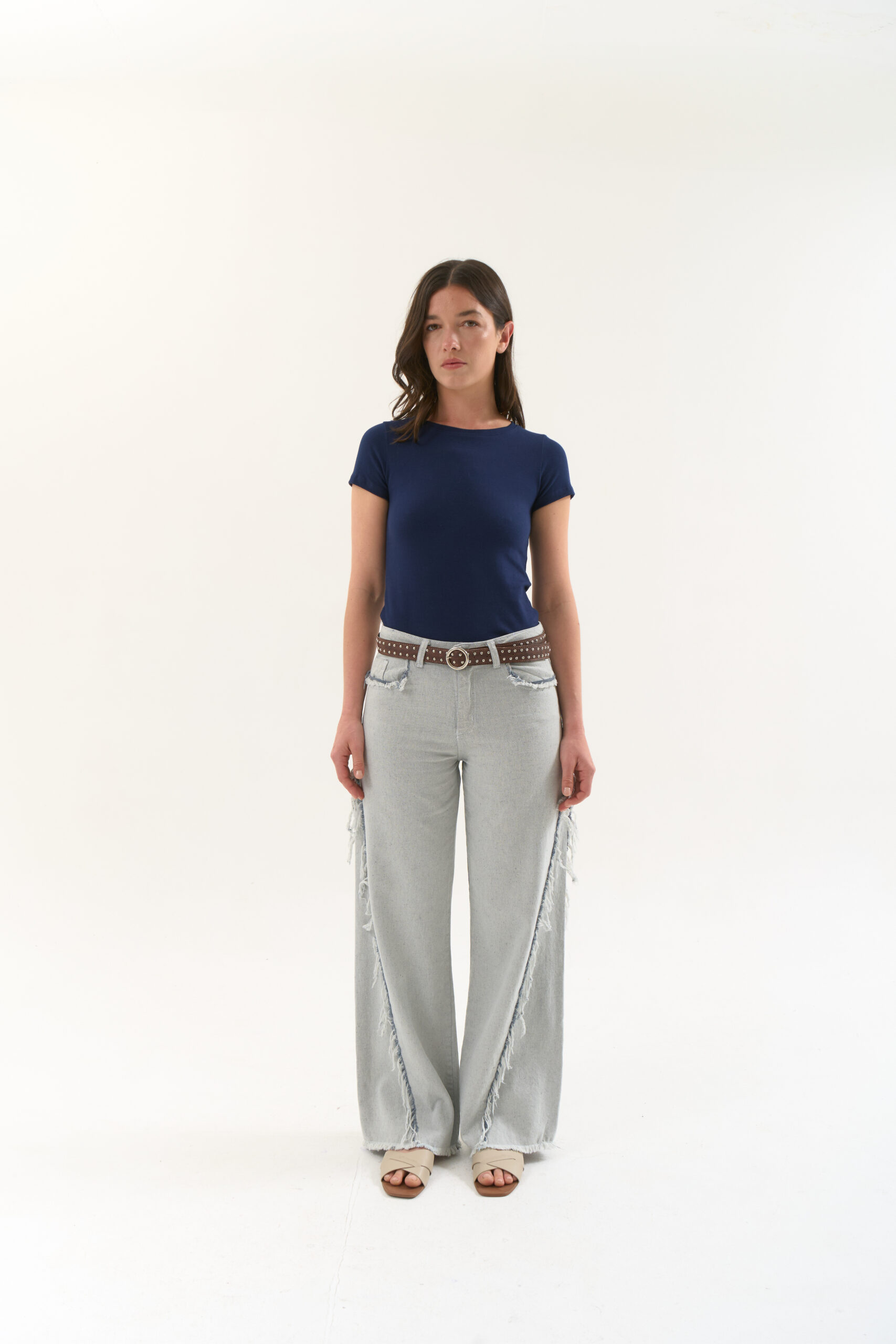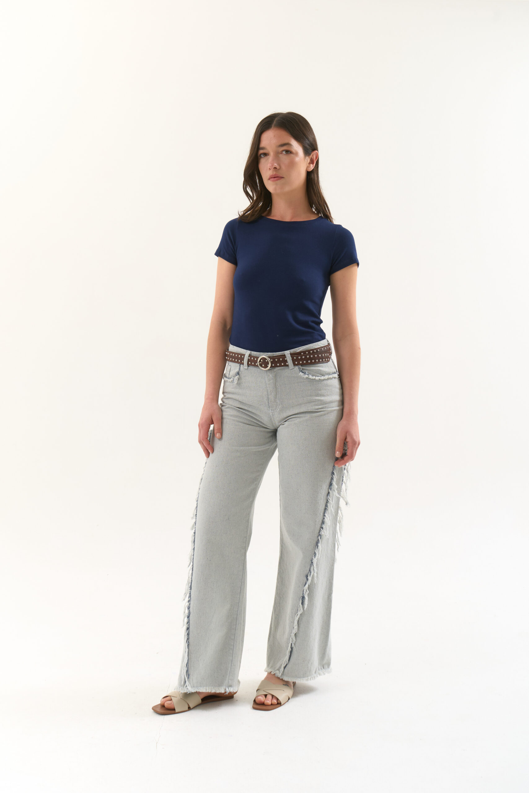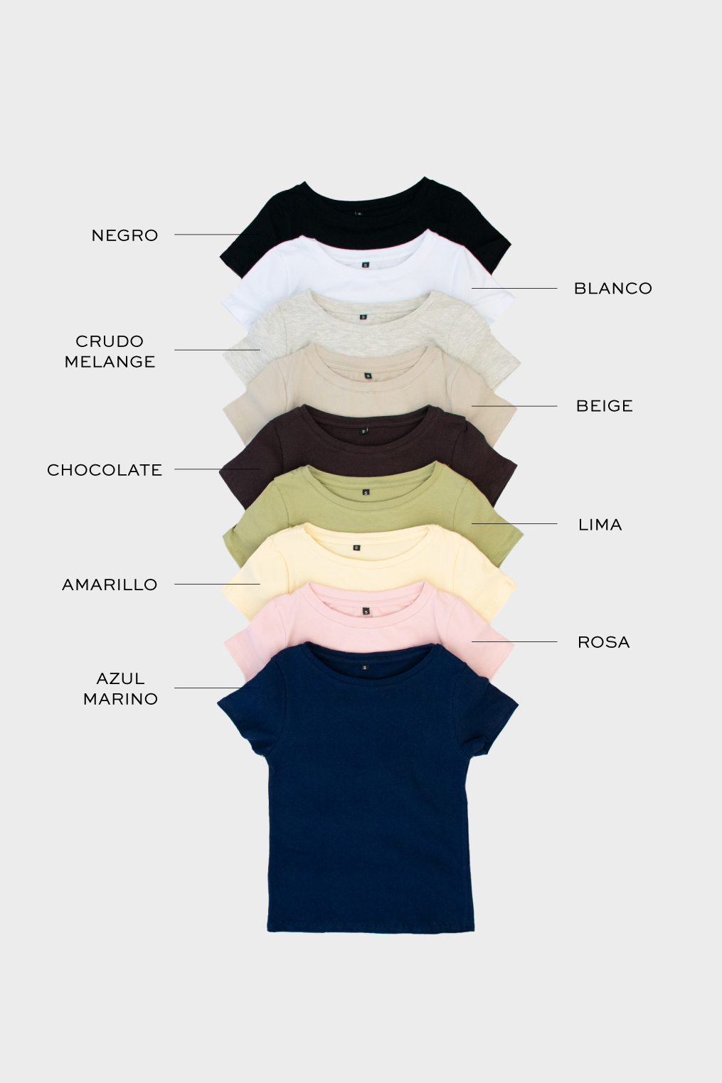 Remera básica en suave algodón con lycra con cuello U y mangas cortas.