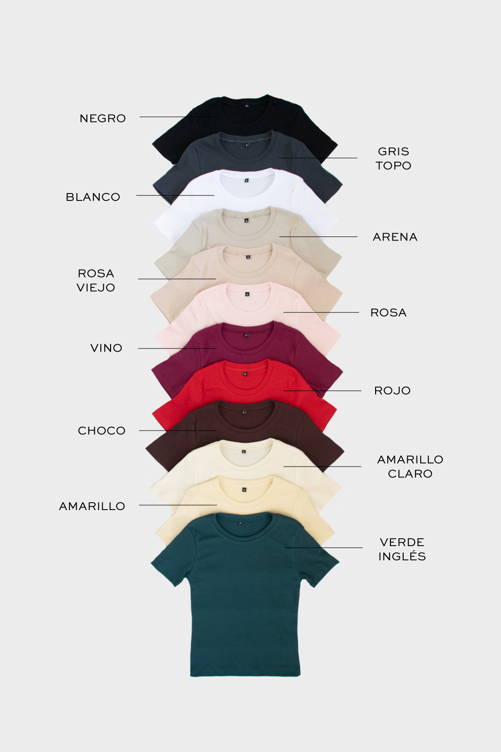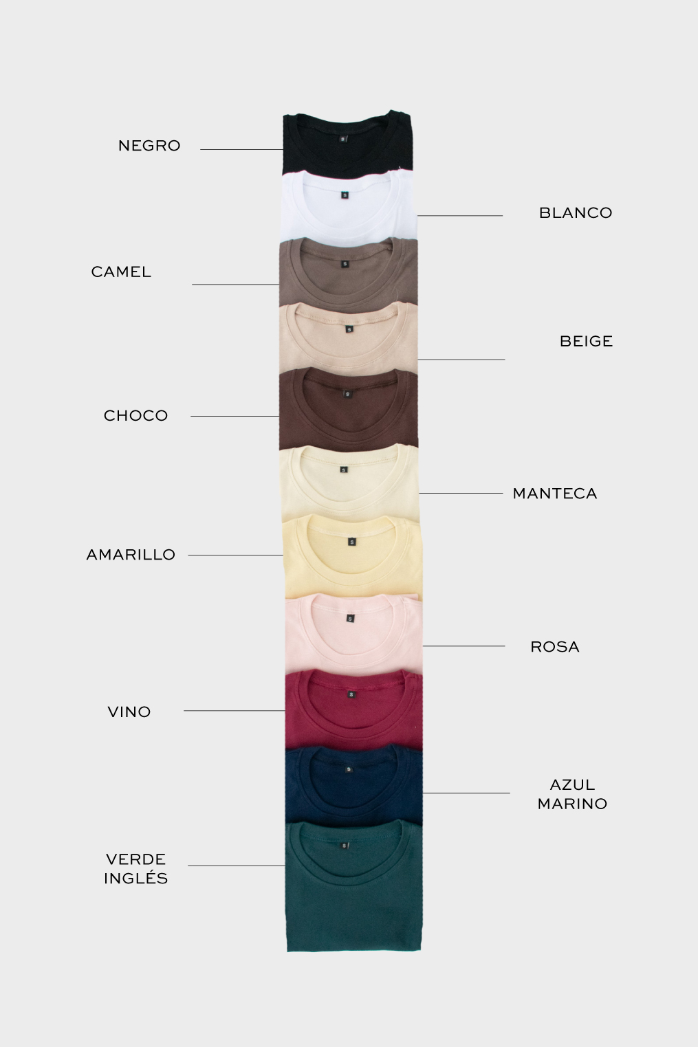 Remera básica de cuello redondo en suave tejido de algodón 100%.