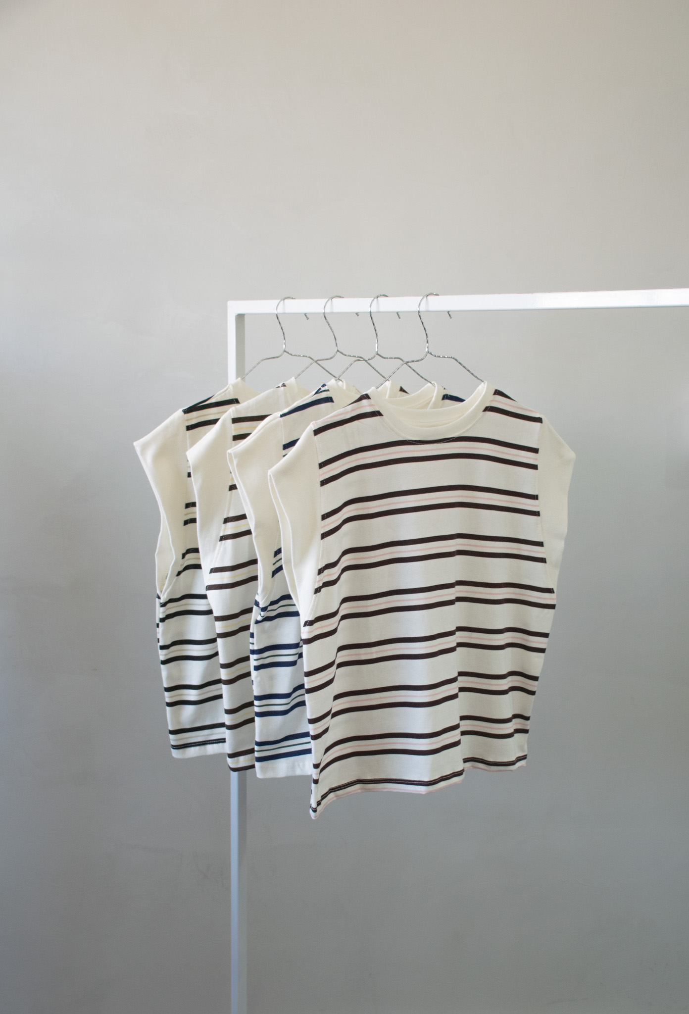 Remera en jersey algodón rayado con cuello redondo y silueta holgada. Modelo con hombros caídos de ribb.