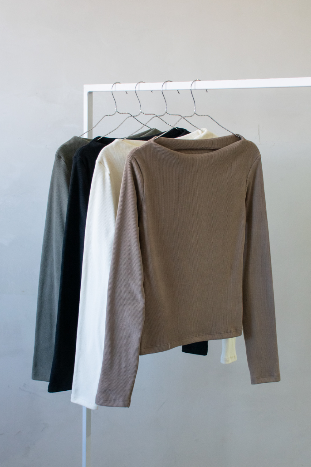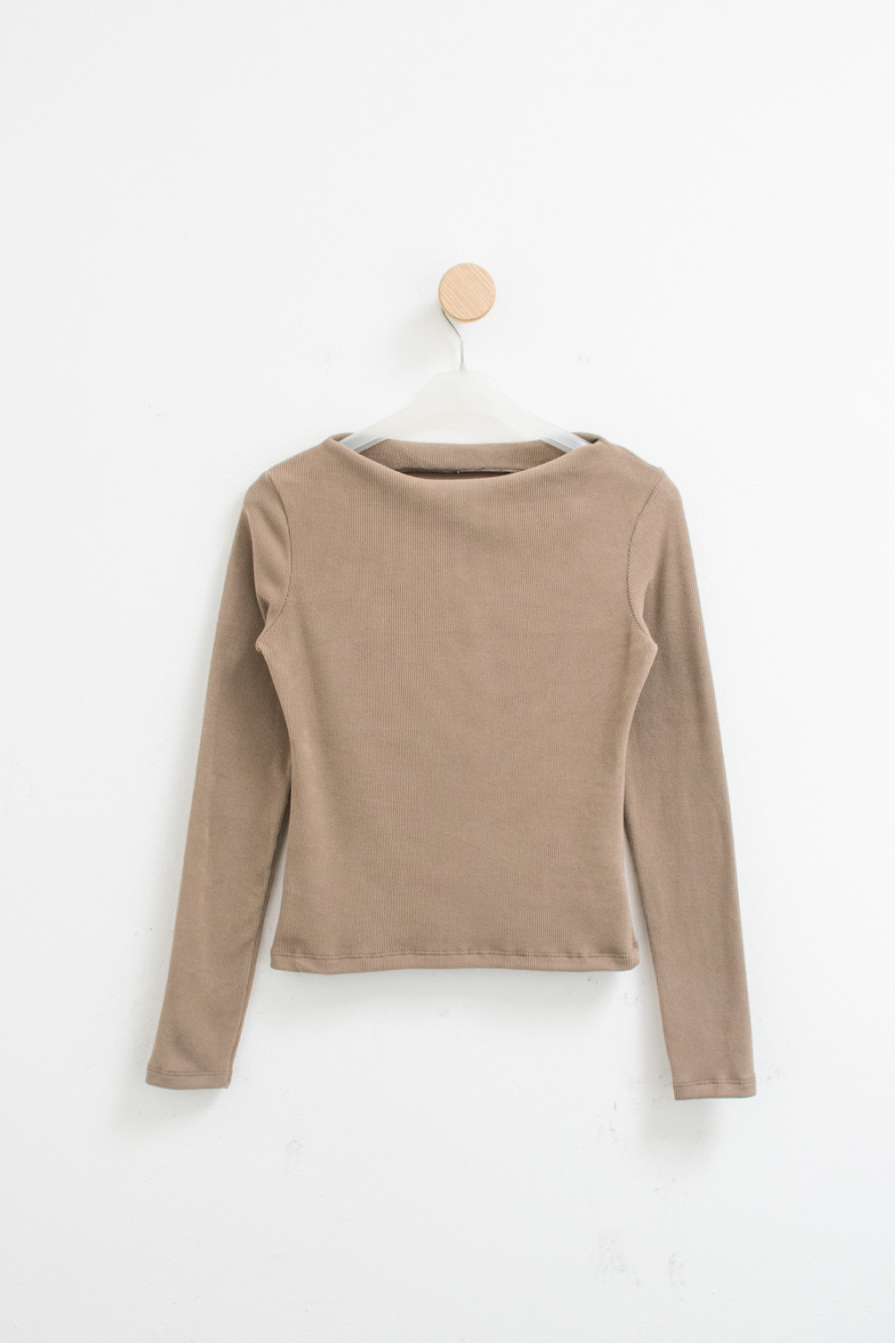 Remera manga larga de ribb lanilla con cuello bote sin costura.