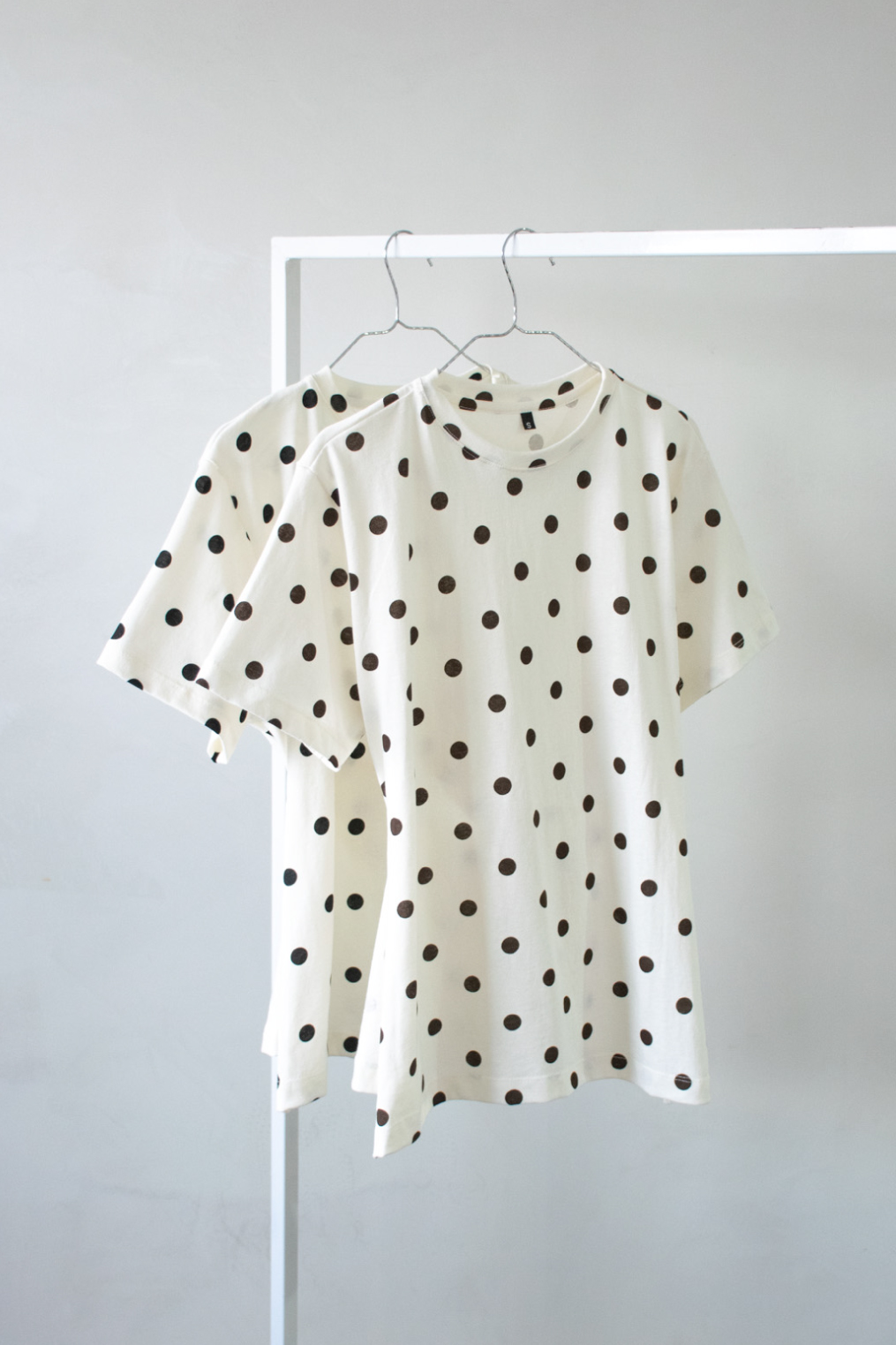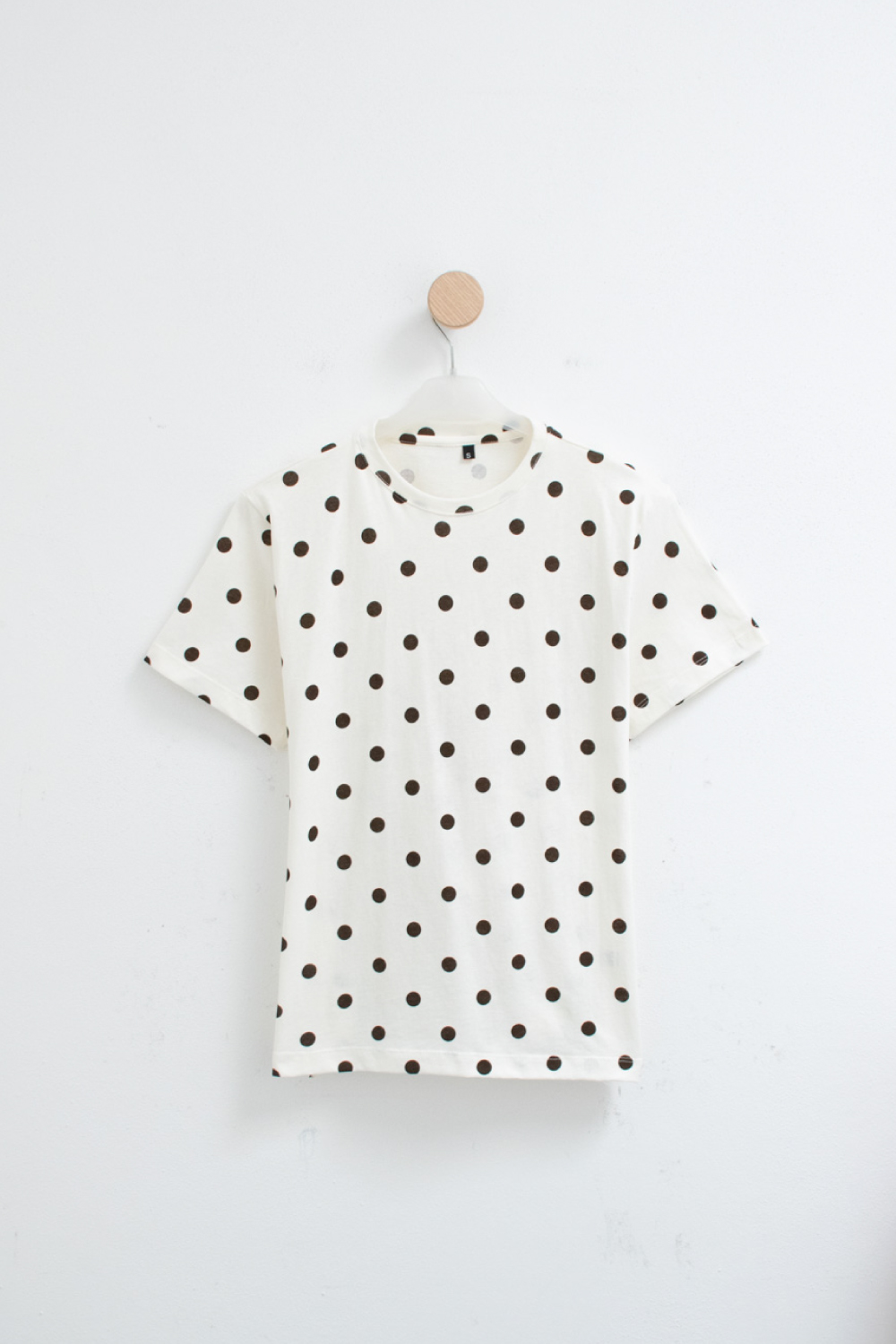 Remera manga corta de Jersey estampado de lunares. Detalle de espalda con cruce drapeado.