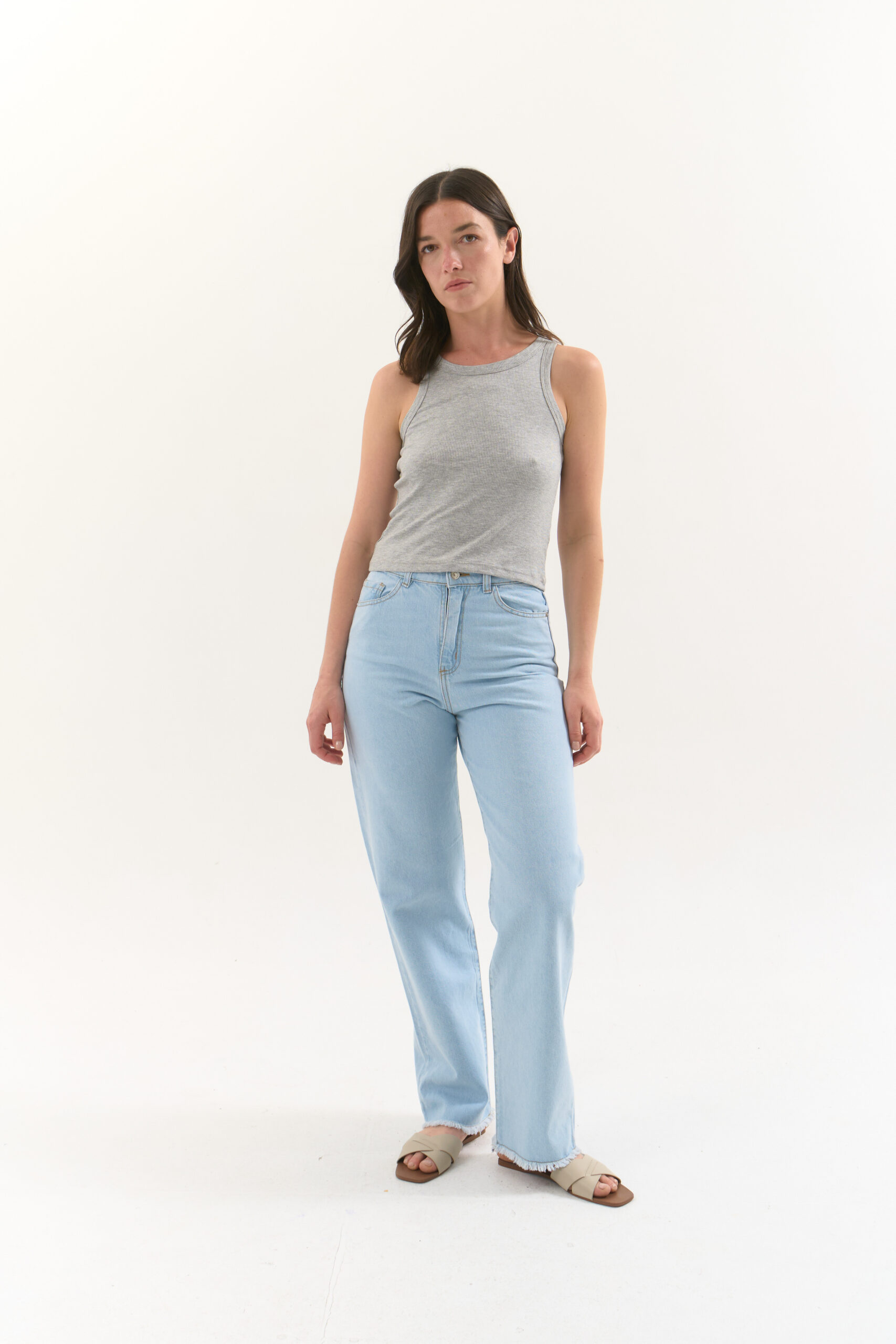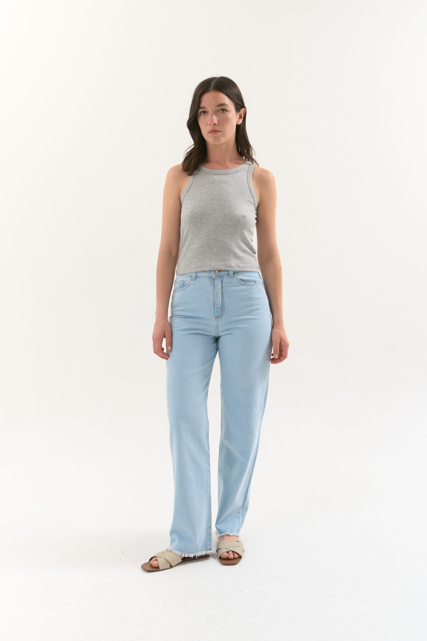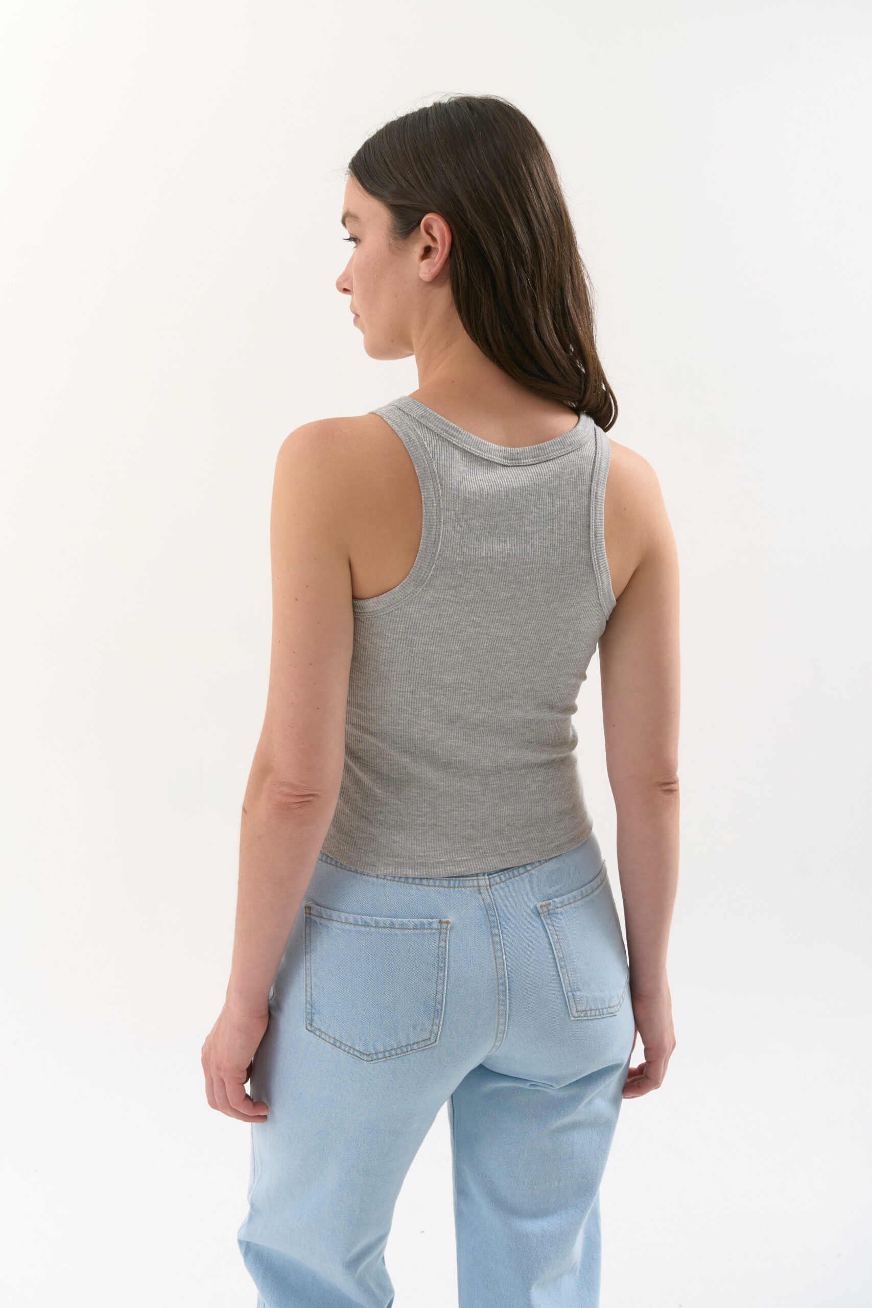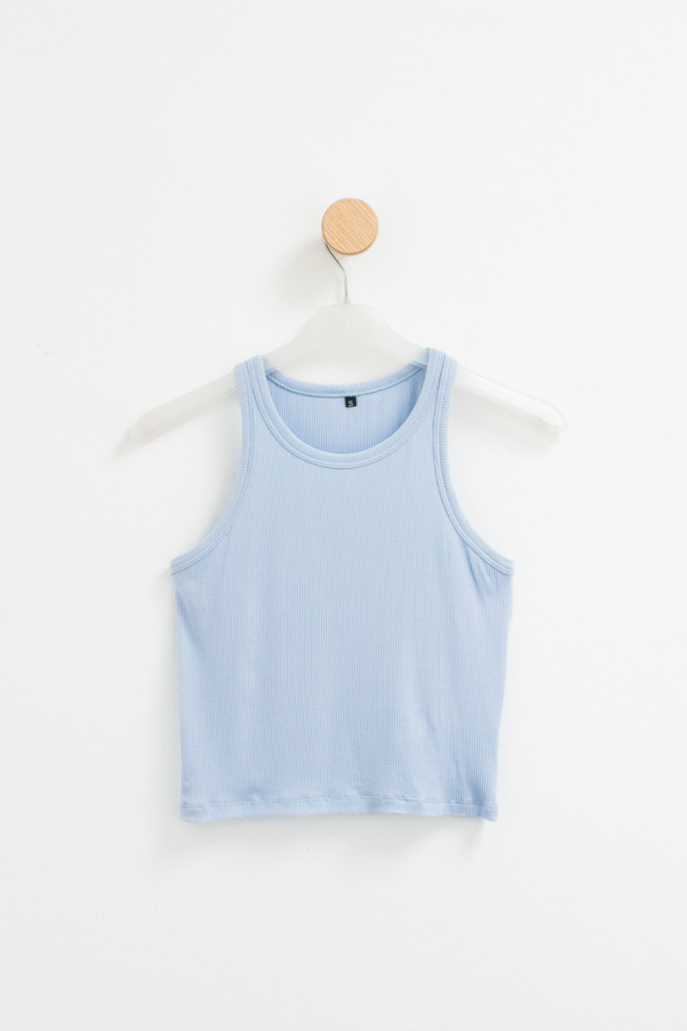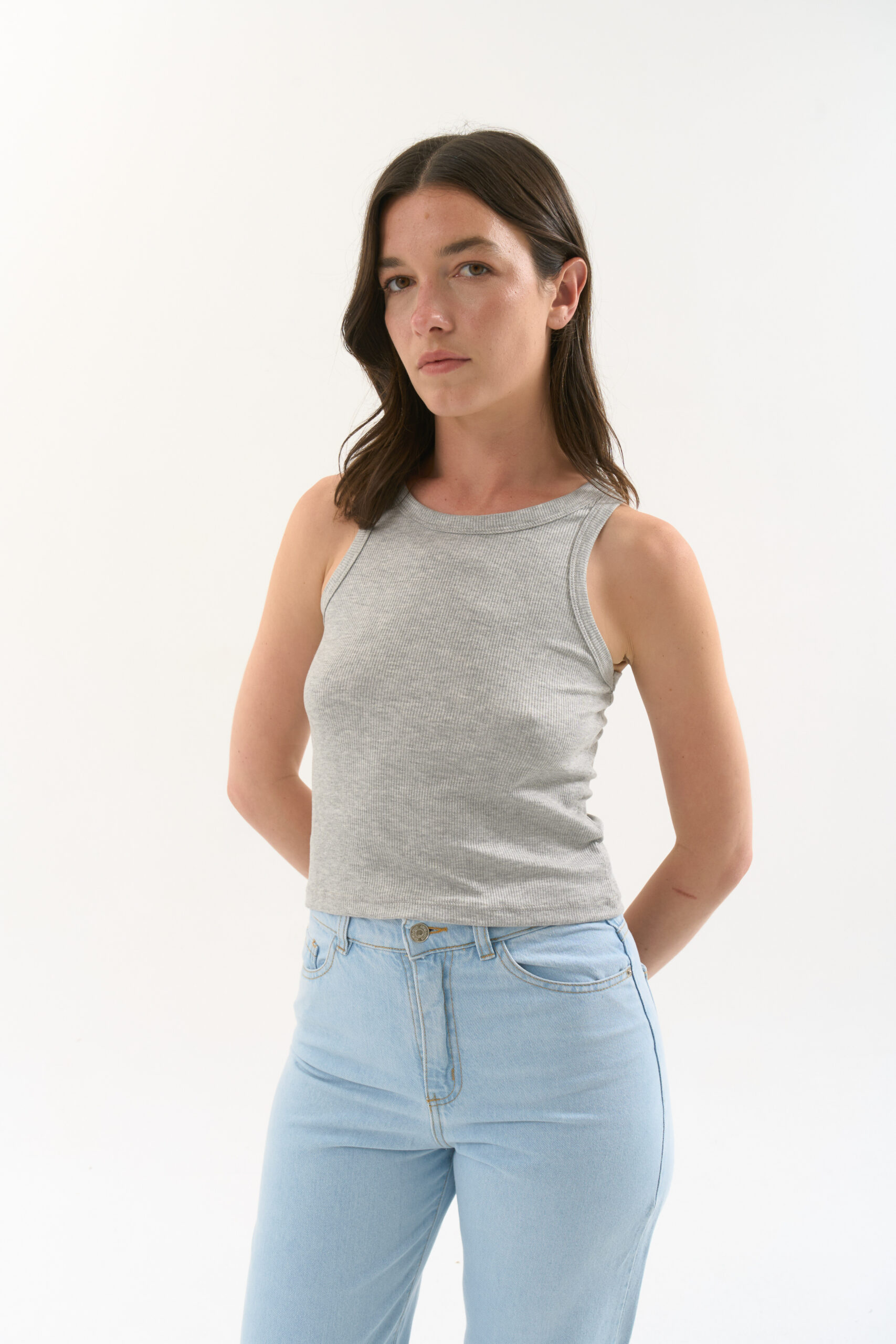 Top de morley viscosa baston ancho. Modelo de cuello redondo. Sin mangas.