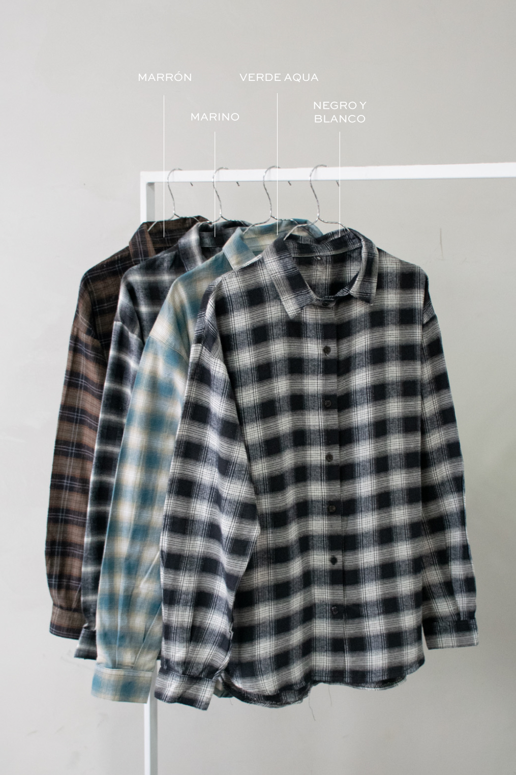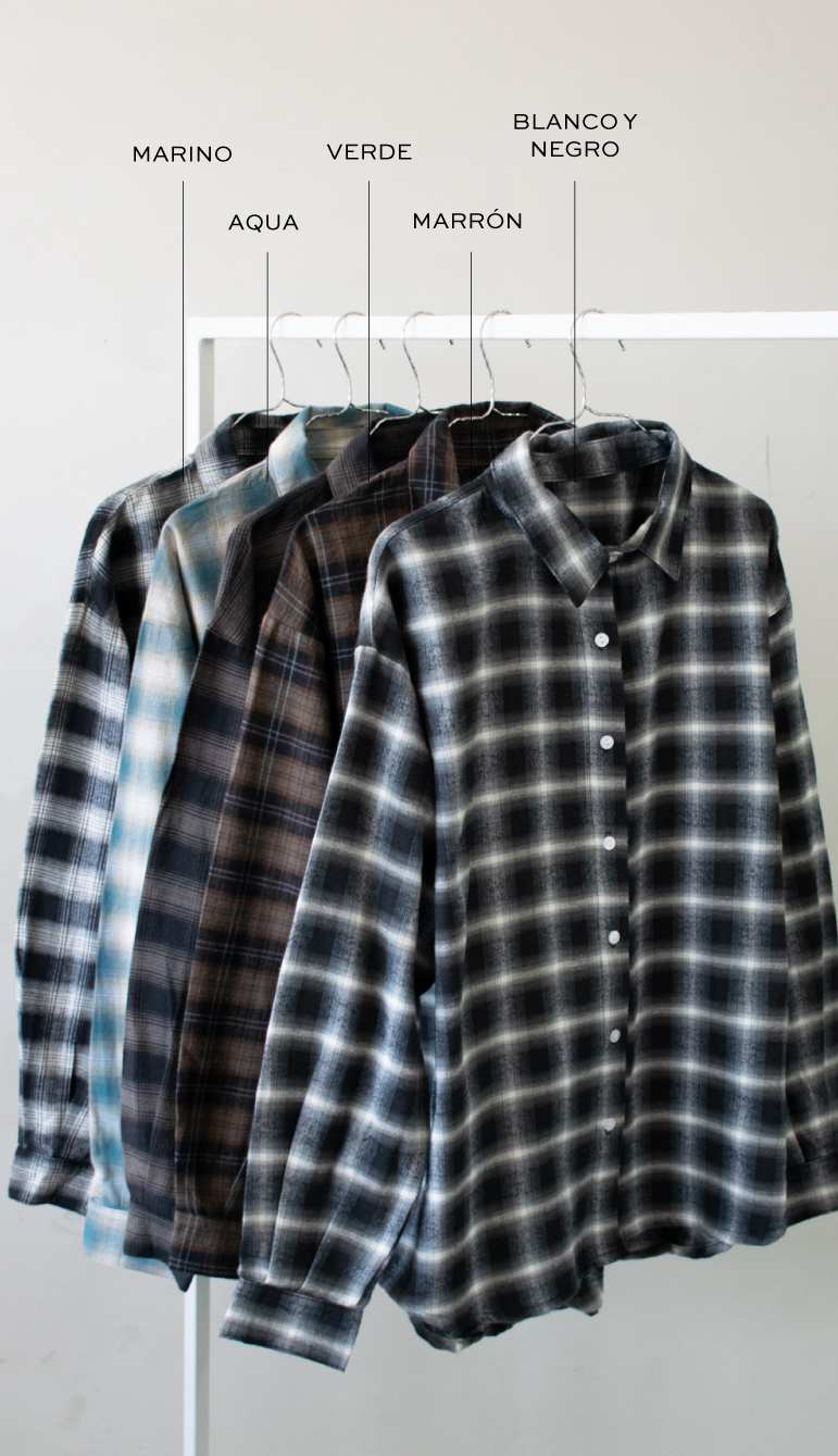 Camisa oversize de Viyela cuadrille. Modelo con pequeñas tablas en espalda y cierre de prenda con botones.