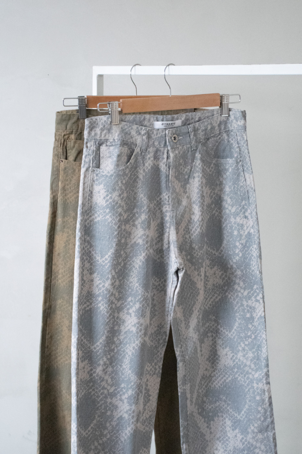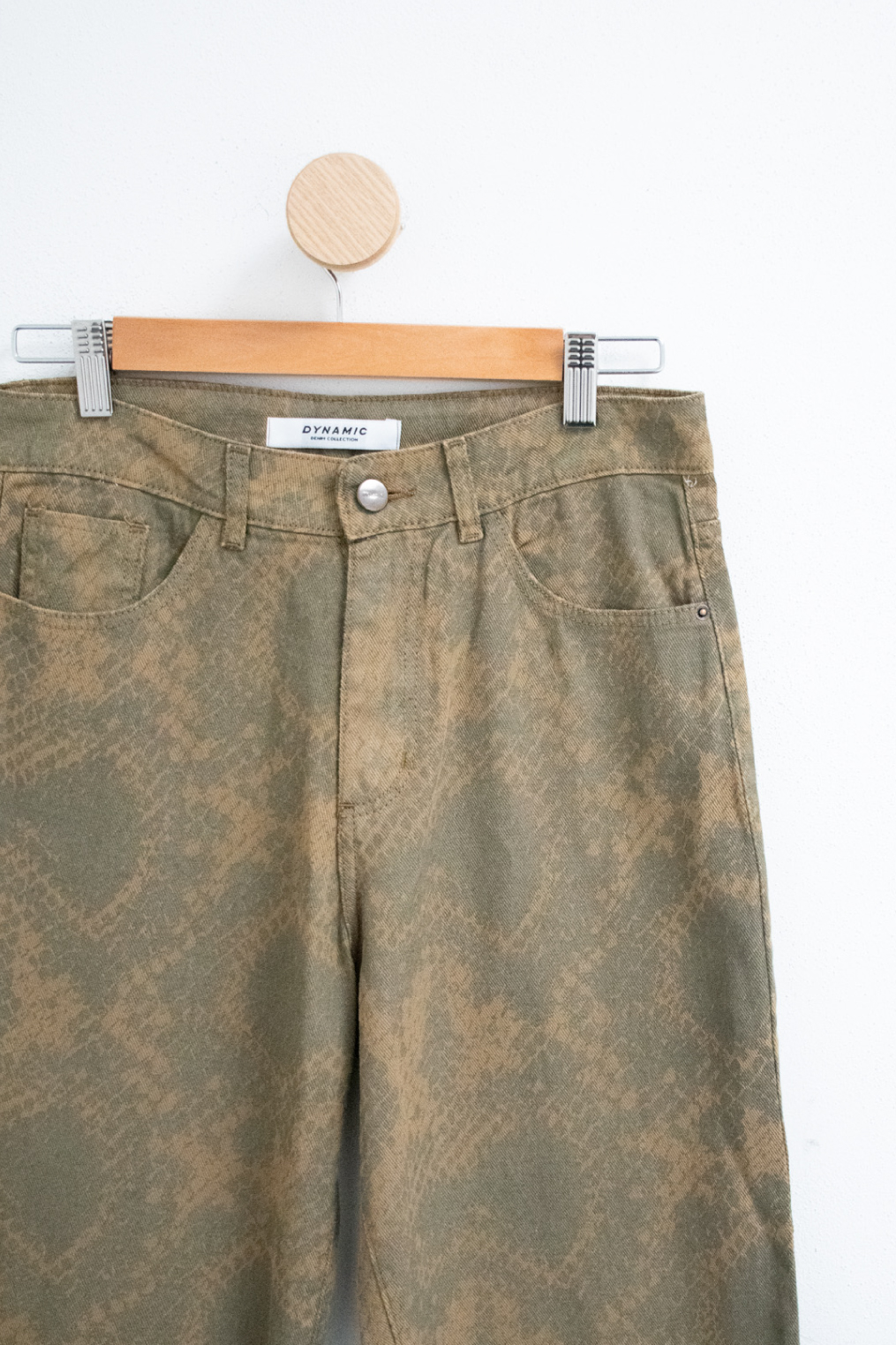 Pantalón de gabardina rígida estampada 100% algodón. Modelo con piernas rectas, tiro alto y cinco bolsillos. Bajo al corte con flecos.