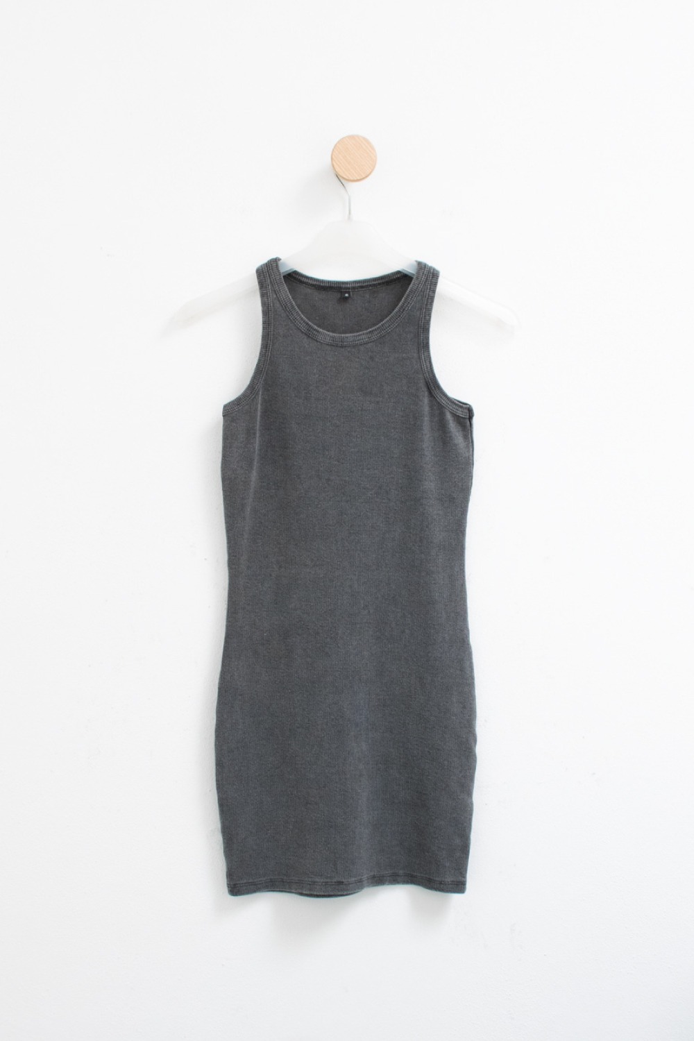 Vestido de morley corto. Modelo al cuerpo con cuello redondo. Lavado WASHED