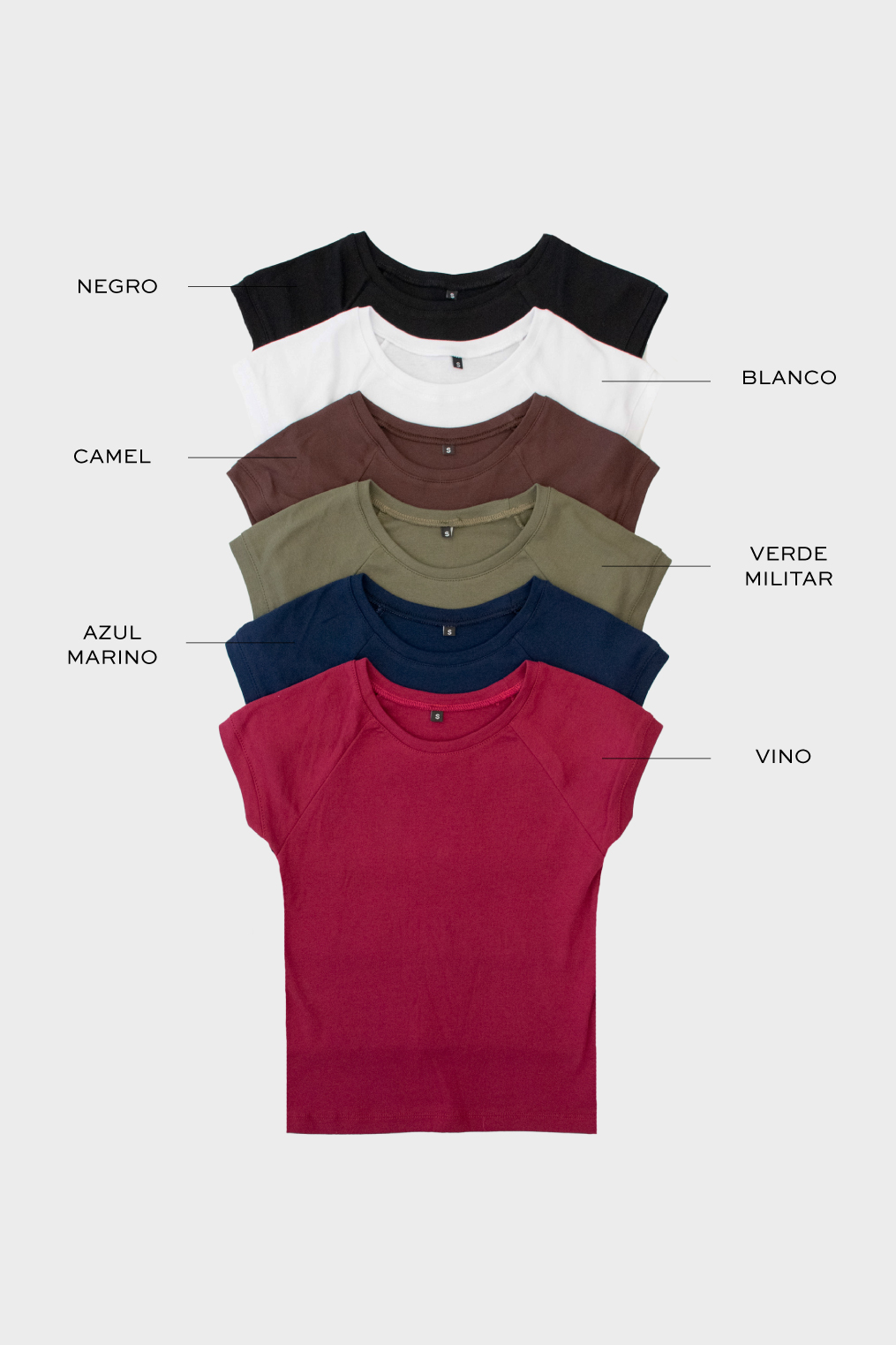 Remera de mangas ranglan cortas. Modelo entallado de ribb con lycra.
