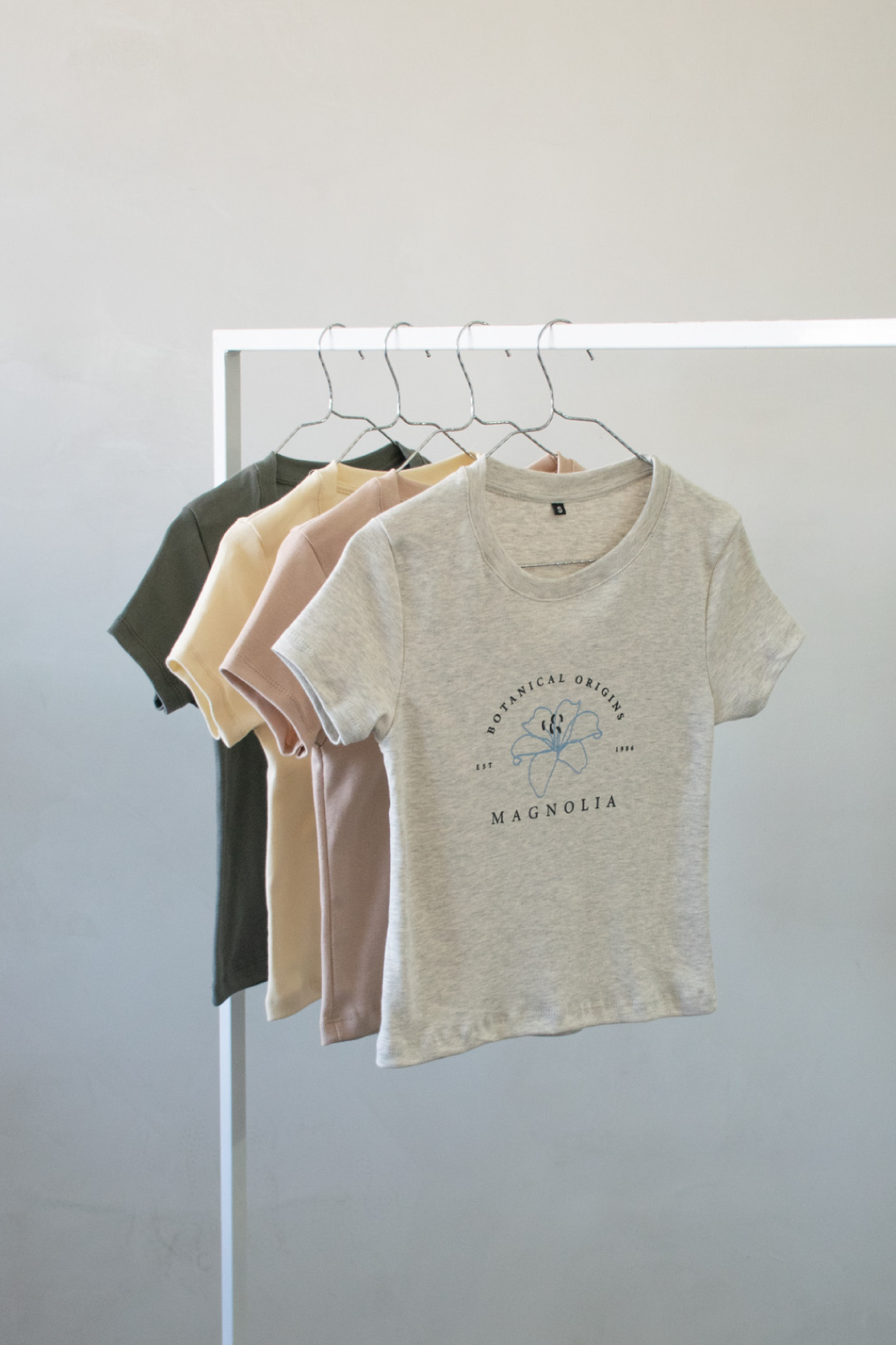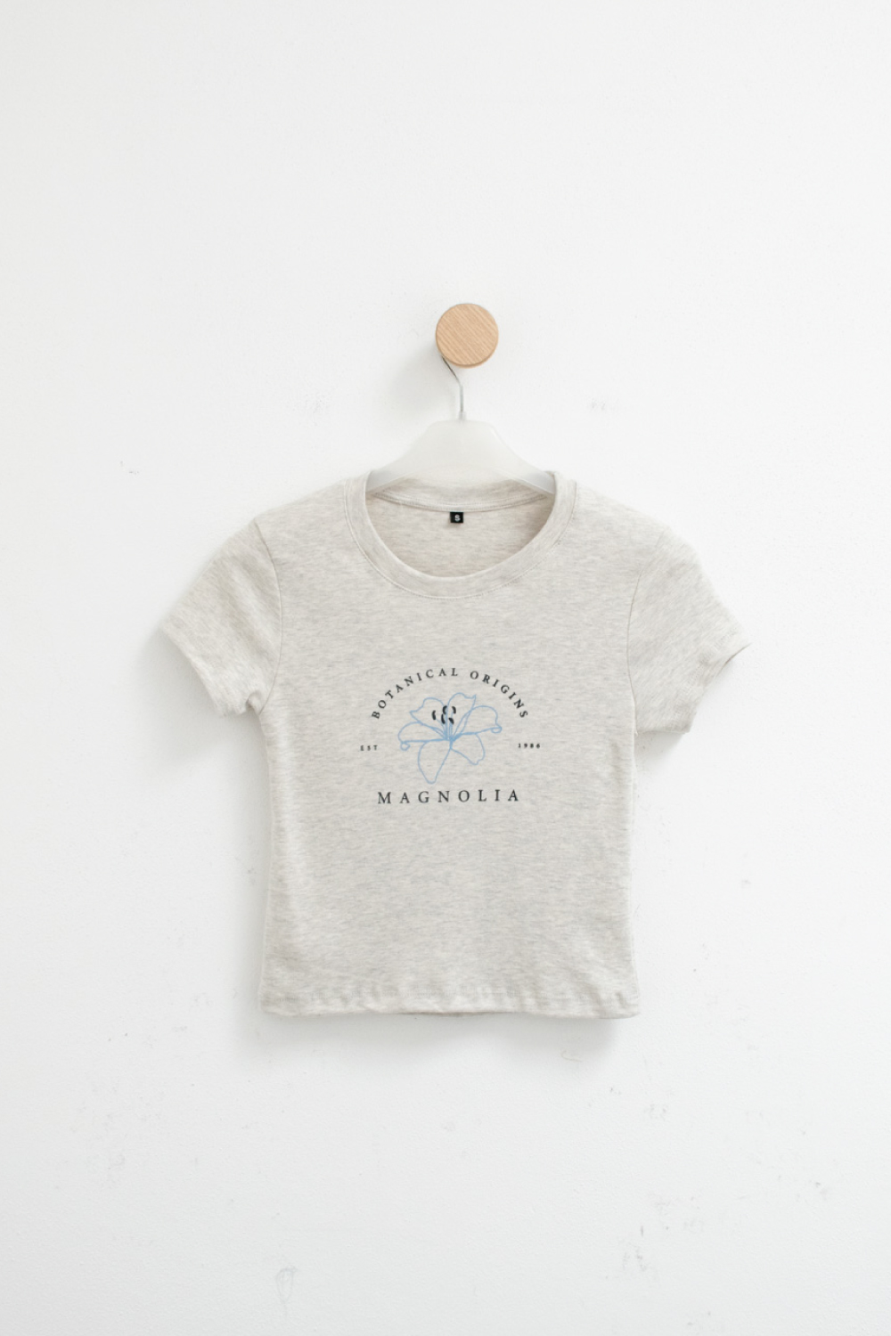 Remera estilo baby tee estampada. Modelo con cuello redondo 100% algodón.