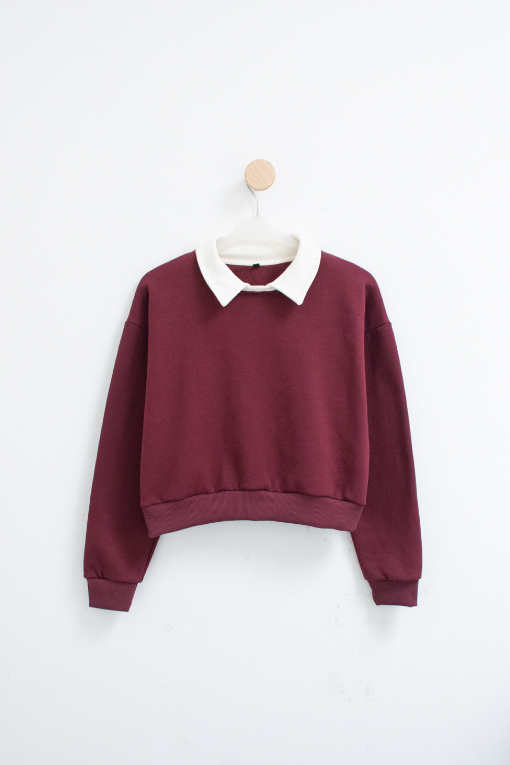 Buzo de frisa invisible con cuello camisa a contratono. Largo hasta la primera cadera con complemento en morley en cintura, puños y cuello.