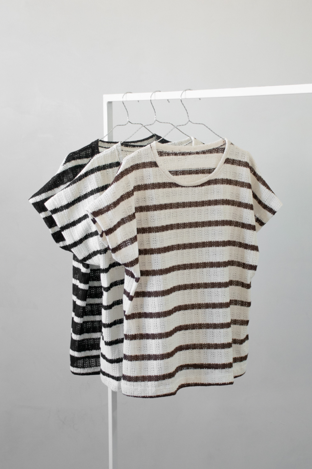 Remerón en tejido desagujado con cuello redondo y hombros caidos.