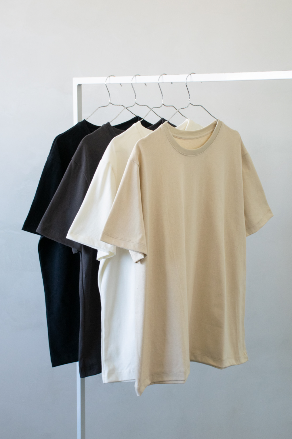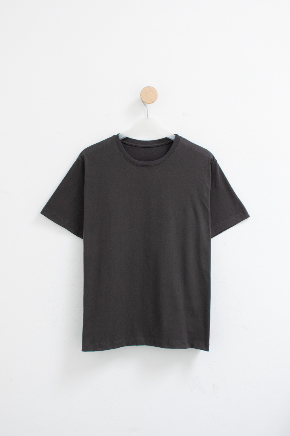 Remerón básico de Jersey pesado con suave esmerilado. Modelo de mangas cortas con hombros levemente caídos y cuello redondo combinado con Ribb. Largo por debajo de la cadera.