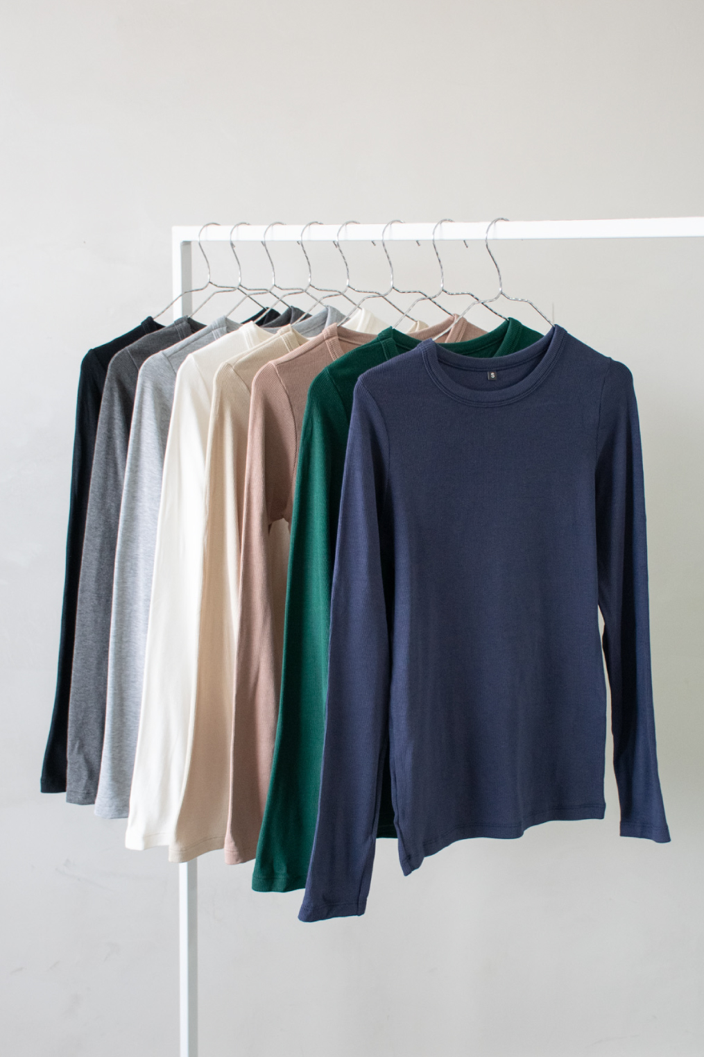 Remera básica de cuello redondo en suave ribb viscosa frisado.