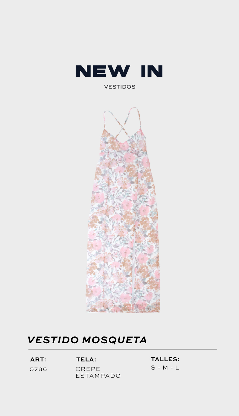 Vestido de crepe de plano estampado con forro interno. Modelo con escote V y espalda descubierta. Detalle de tira regulable para breteles y tajo en el bajo delantero