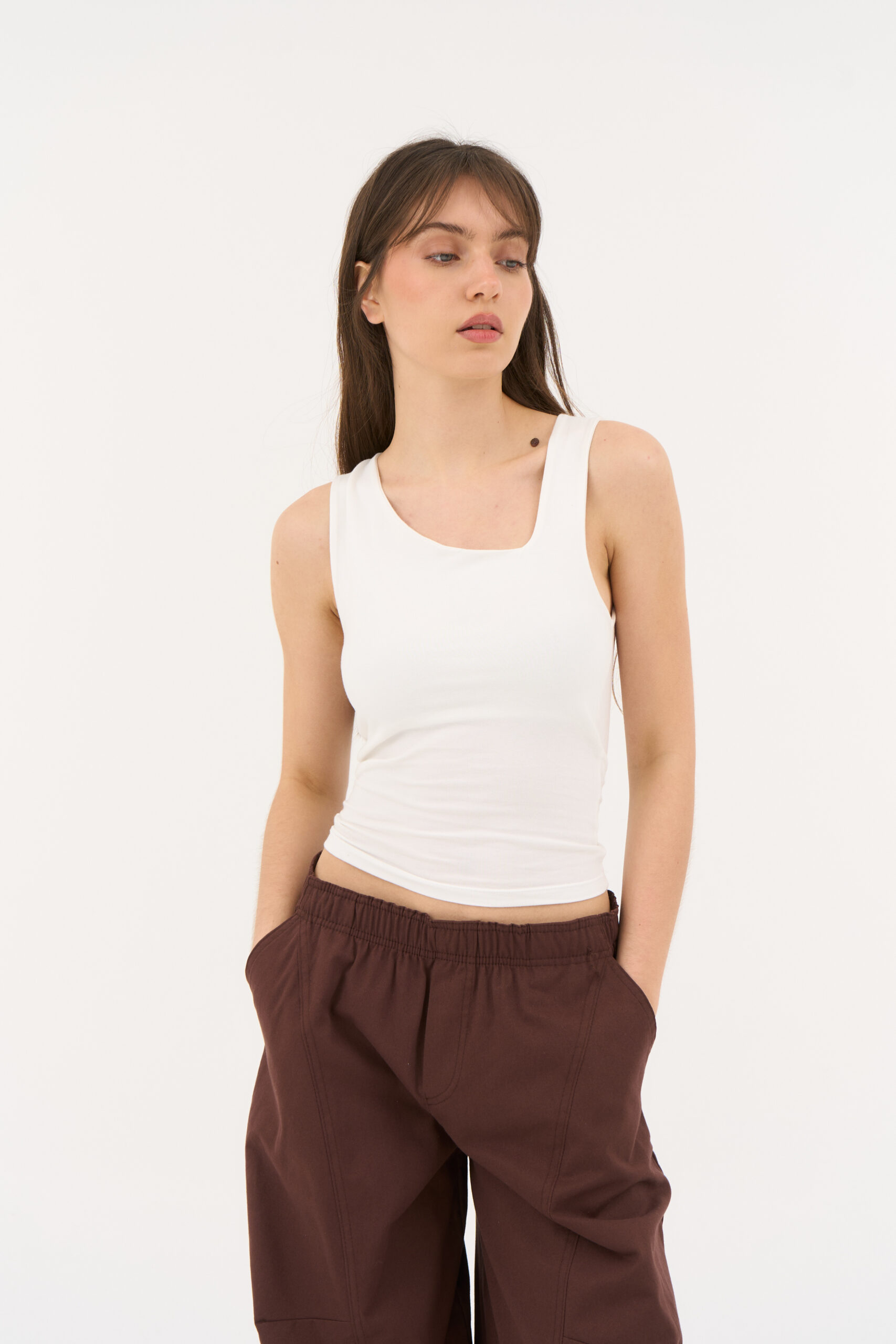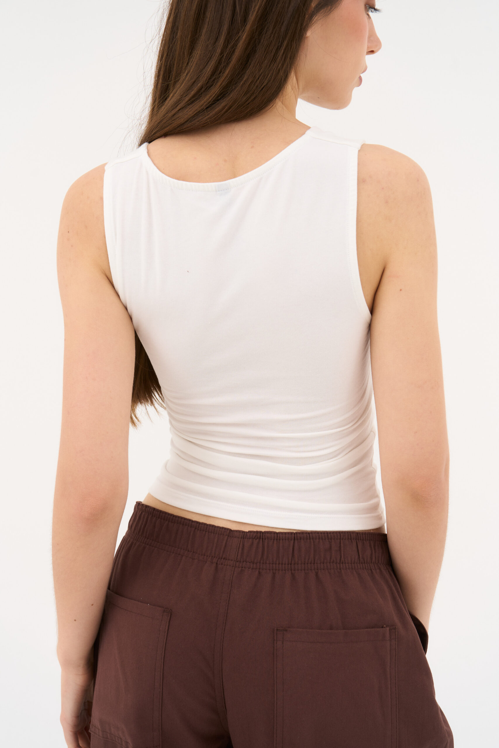 Musculosa de algodón con lycra con doble tela en delantero y escote asimétrico